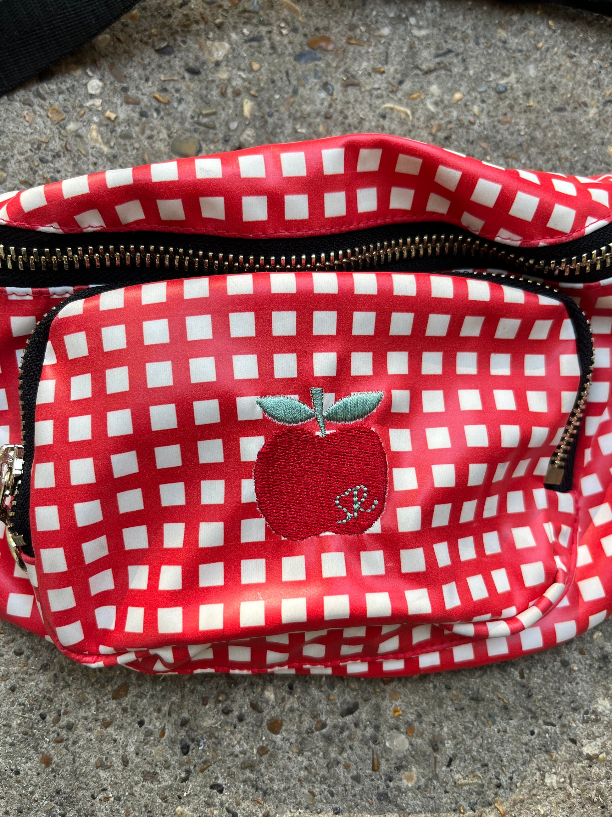 Sonia Rykel red gingham bum bag with apple detail